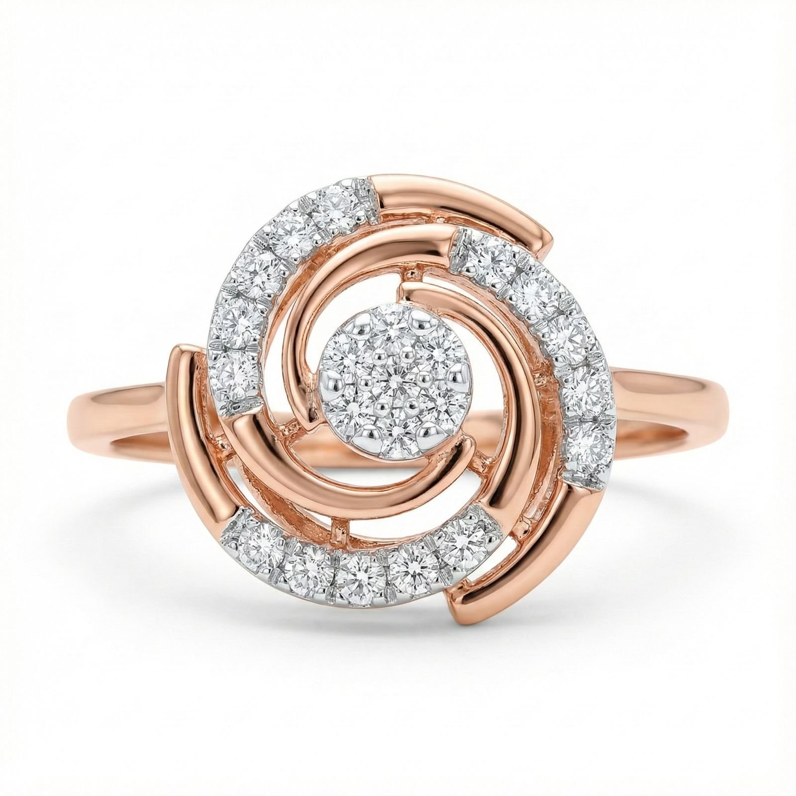Featuring an enchanting swirling design of lab-grown diamonds set in 14K rose gold, this ring symbolizes motion, grace, and enduring brilliance. A contemporary luxury statement for every occasion.