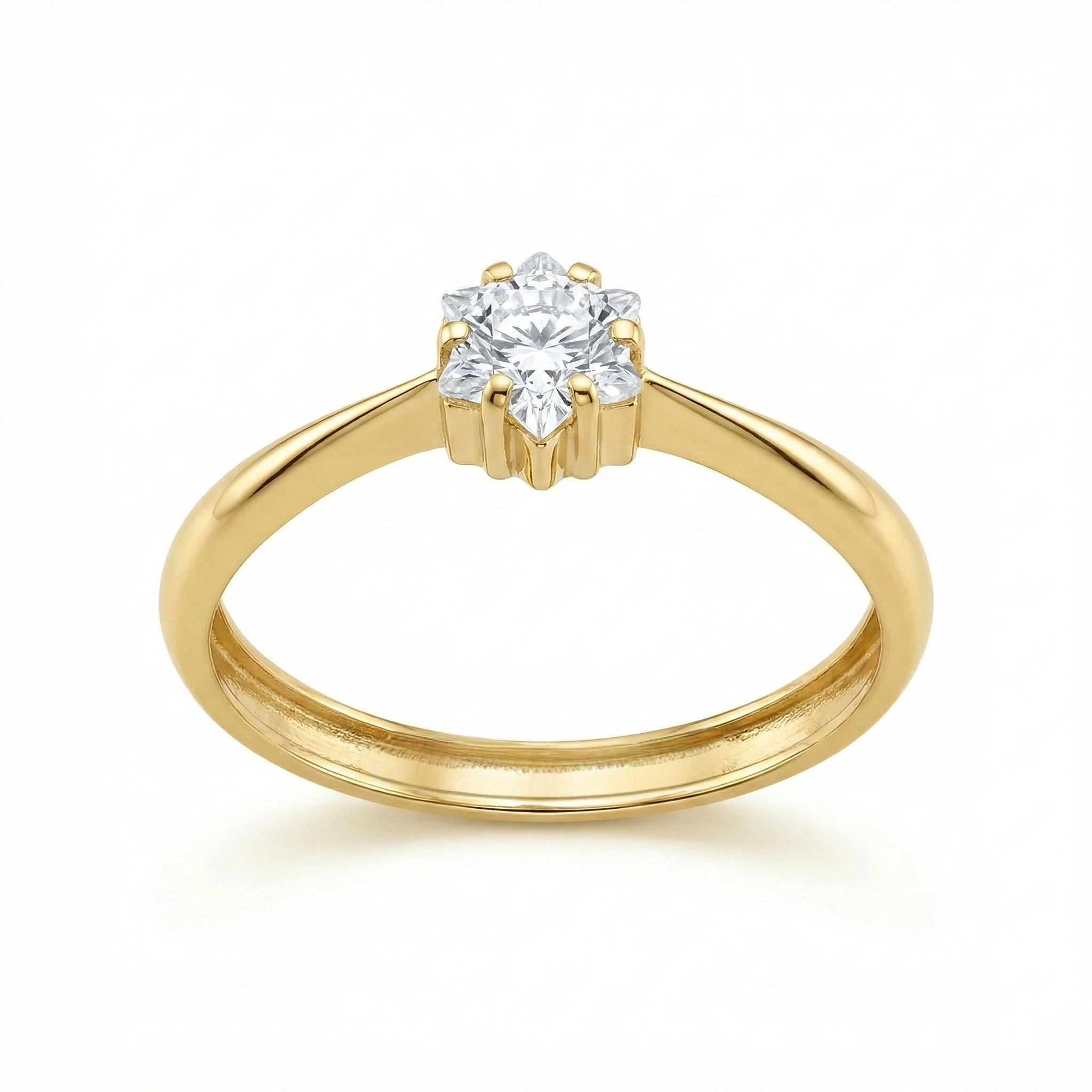 The Eternal Bloom Single Stone Ring is inspired by the delicate beauty of a flower in full bloom. Featuring a brilliant single centerpiece stone held in an elegant petal-style crown setting, this design enhances sparkle while adding a soft, graceful character. The polished gold band keeps the look refined and timeless, allowing the floral detail to shine effortlessly.