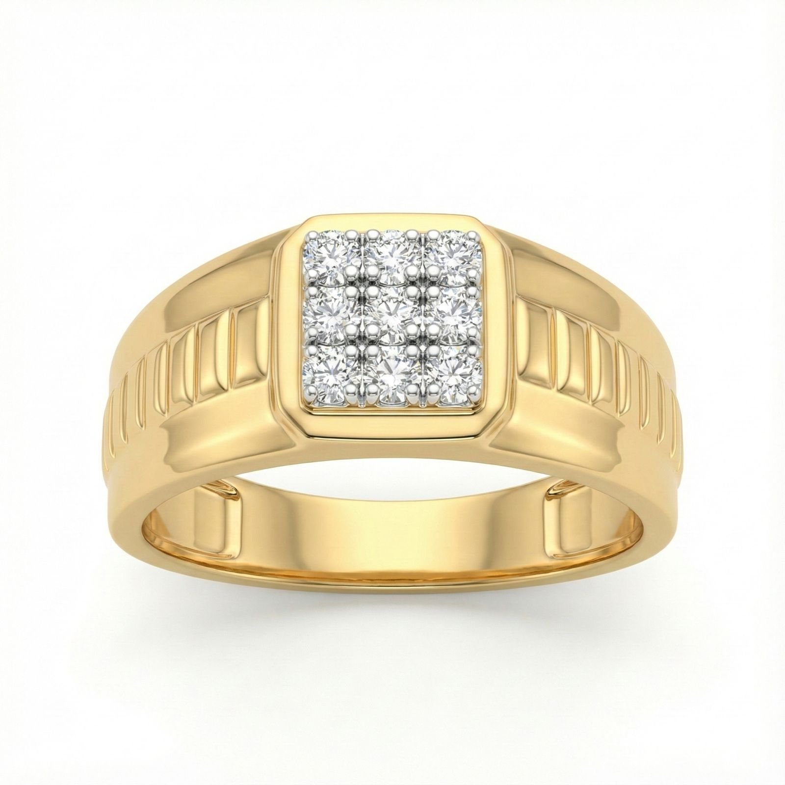 Bold and powerful, this men’s ring features a striking square diamond cluster set on a strong 14K yellow gold band with structured detailing. A perfect expression of authority, prestige, and refined masculinity.